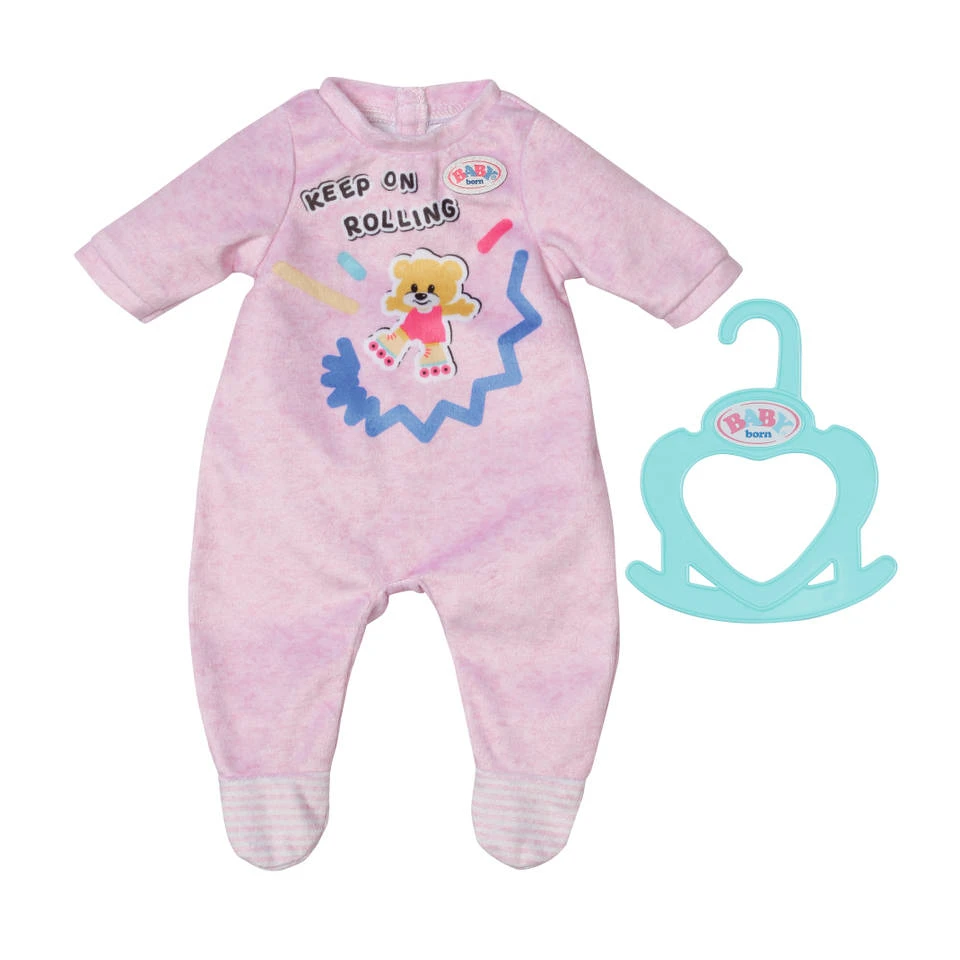 Ben je voor je BABY born pop op zoek naar een outfit waarin ze lekker kan relaxen op de bank? Wat dacht je dan van deze schattige romper? De sokken zijn vastgenaaid aan het speelpakje, dus de voeten van je pop blijven lekker warm. Het speelpakje is makkelijk aan en uit te trekken.