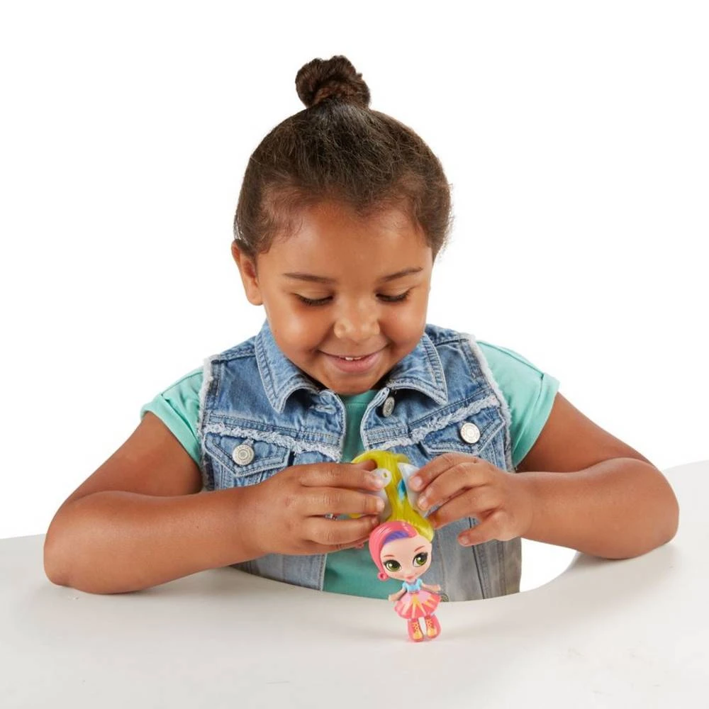 Sunny is één van de Sunny Day wonderhaarpoppen van Nickelodeon met heel wat stijlvolle verrassingen! Maak het haarlintje los en ontdek de verrassingsbal met drie haarstylingsaccessoires die uit het haar tevoorschijn komt. Schuif de bal over het haar naar beneden om het een verrassende kleur te geven! Welke kleur zal het zijn? Zodra kinderen de geheime lok hebben ontdekt kunnen ze de bal openmaken en de accessoires gebruiken om hun pop te stylen. Sunny is met iedereen bevriend en is de beste haarstylist van Friendly Falls. Met haar haarspulletjes en vaardigheden maakt ze iedere dag weer tot een stylefestijn. Deze wonderhaarpop is ongeveer 15 centimeter groot.